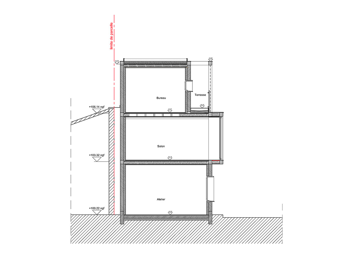 Ce projet prévoit l’extension du bâti existant sur l’emprise d’une remise et d’un local transformateur (EDF). Il est également prévu la réhabilitation complète et la surélévation de cette bâtisse.