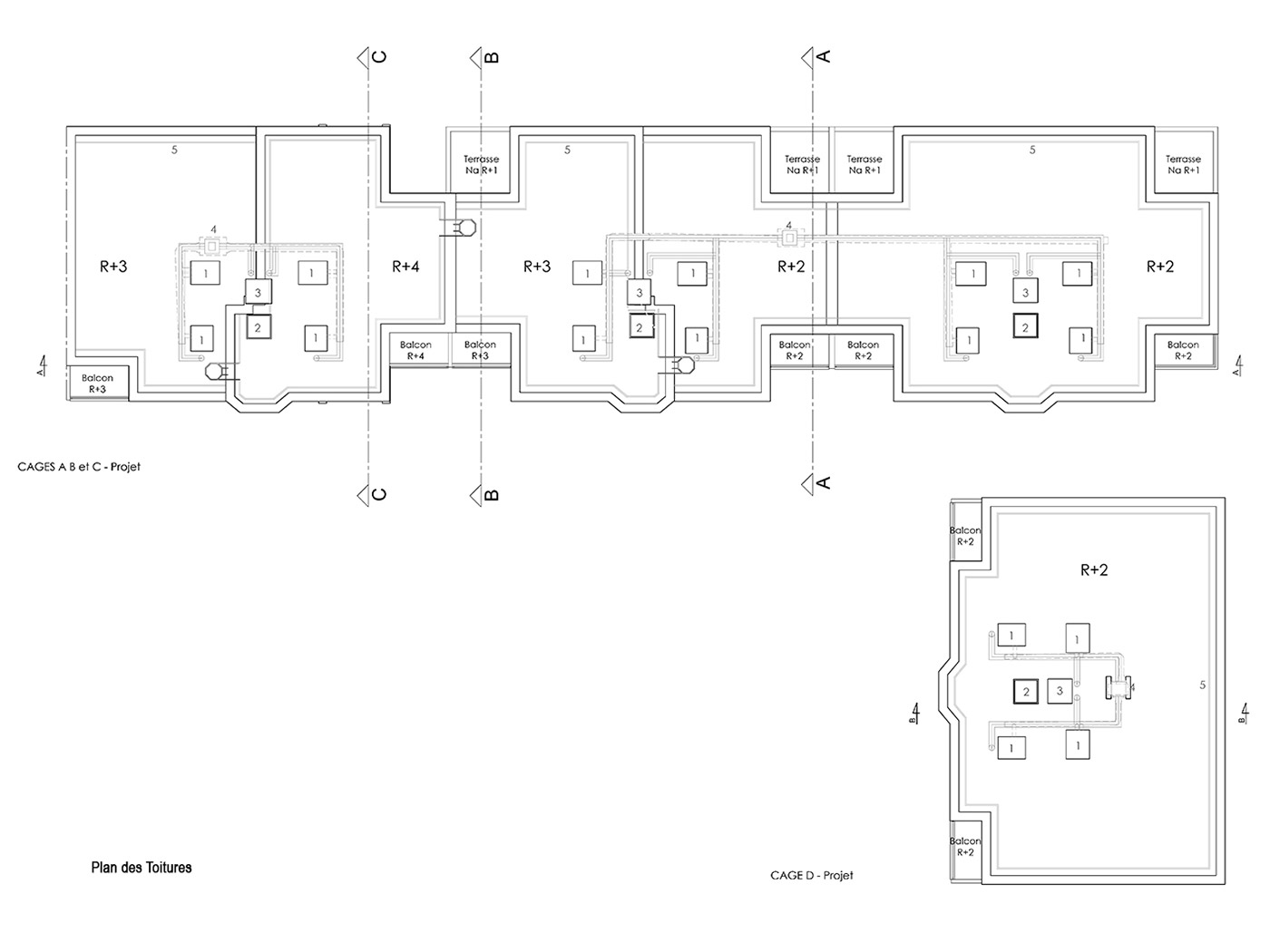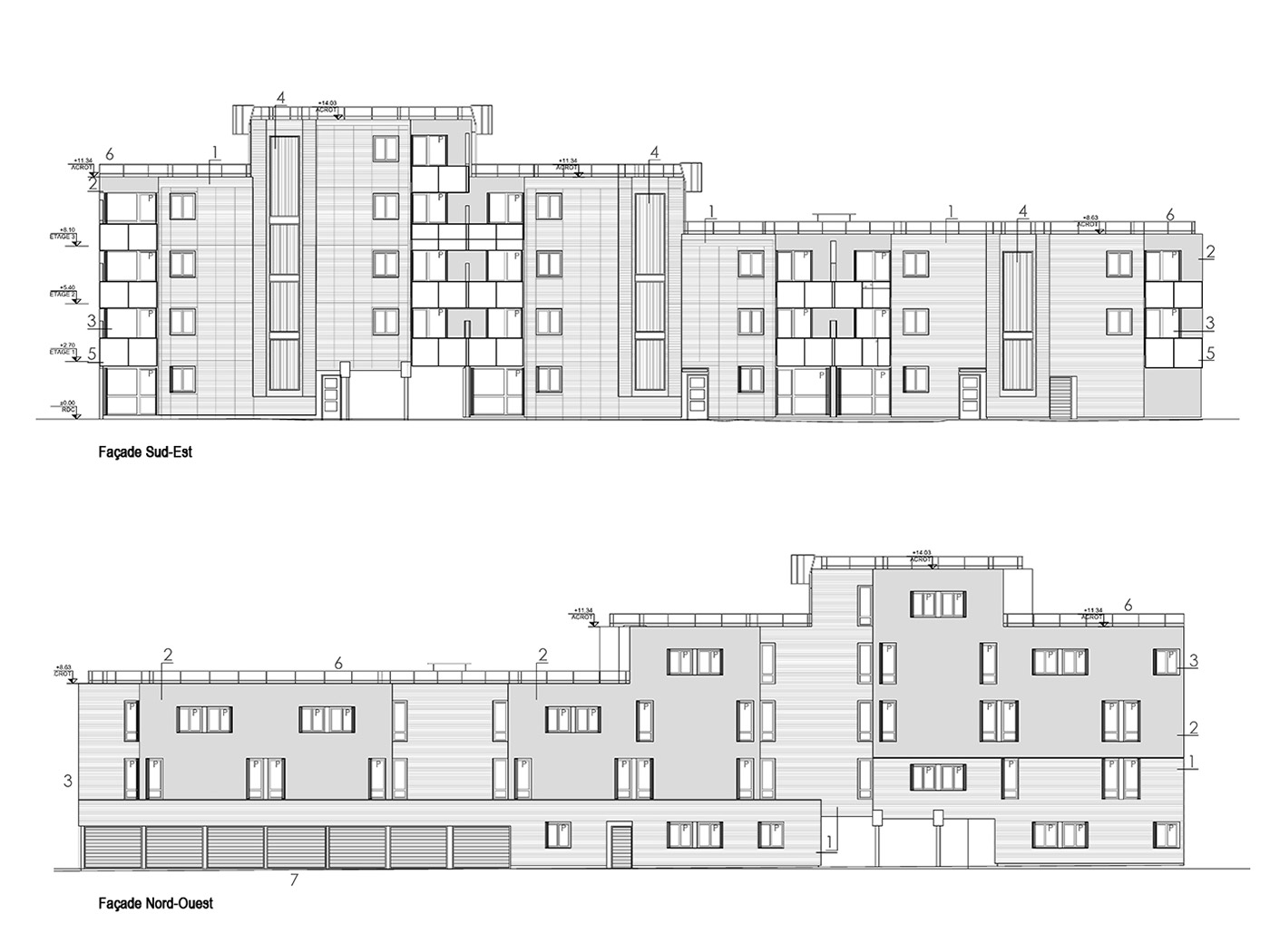 Réalisation d’une isolation thermique par l’extérieur, remplacement de l’isolant et réfection de l’étanchéité du toit, changement des fenêtres et des occultations, création d’un nouveau réseau de ventilation mécanique, mise en place de ballons d’eau chaude thermodynamiques (sur air extérieur), réfection des pièces humides (remplacement des appareillages, faïences et sols) et amélioration des parties communes.