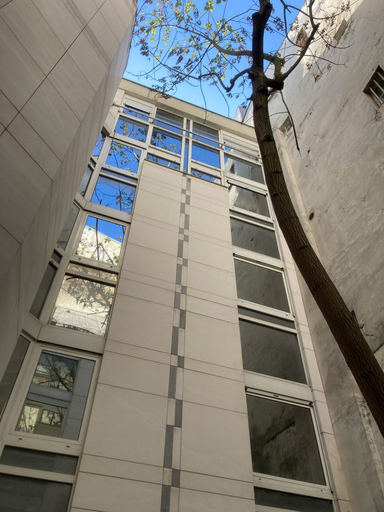 Réalisation d’une isolation thermique par l’extérieur des façades sur cour, remplacement de l’isolant et réfection de l’étanchéité du toit, changement des fenêtres et des occultations, rénovation du système de ventilation mécanique et remplacement des émetteurs de chauffage.