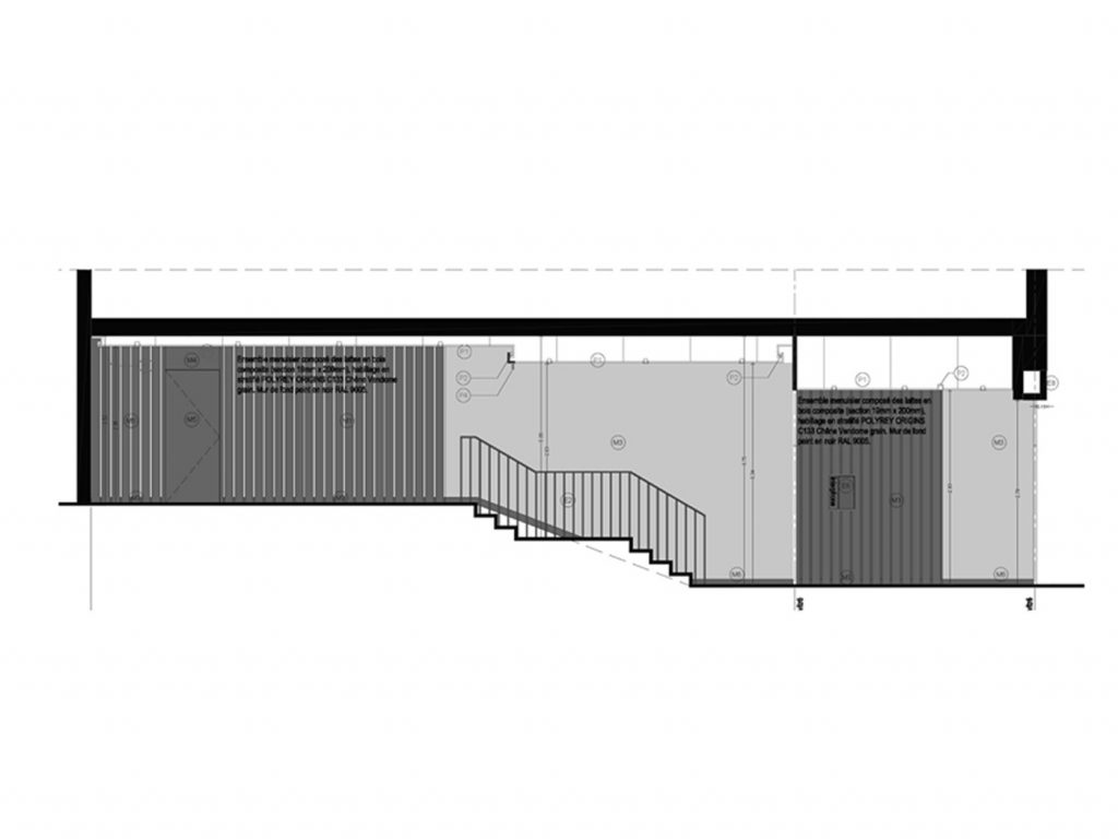 Notre volonté était de créer un espace qualitatif dont la richesse expressive des matériaux est mise au premier plan. Ici la texture du carrelage et du bois, le graphisme des lignes verticales et l’éclairage artificiel dialoguent en suspension sur un fond noir et blanc presque abstrait.